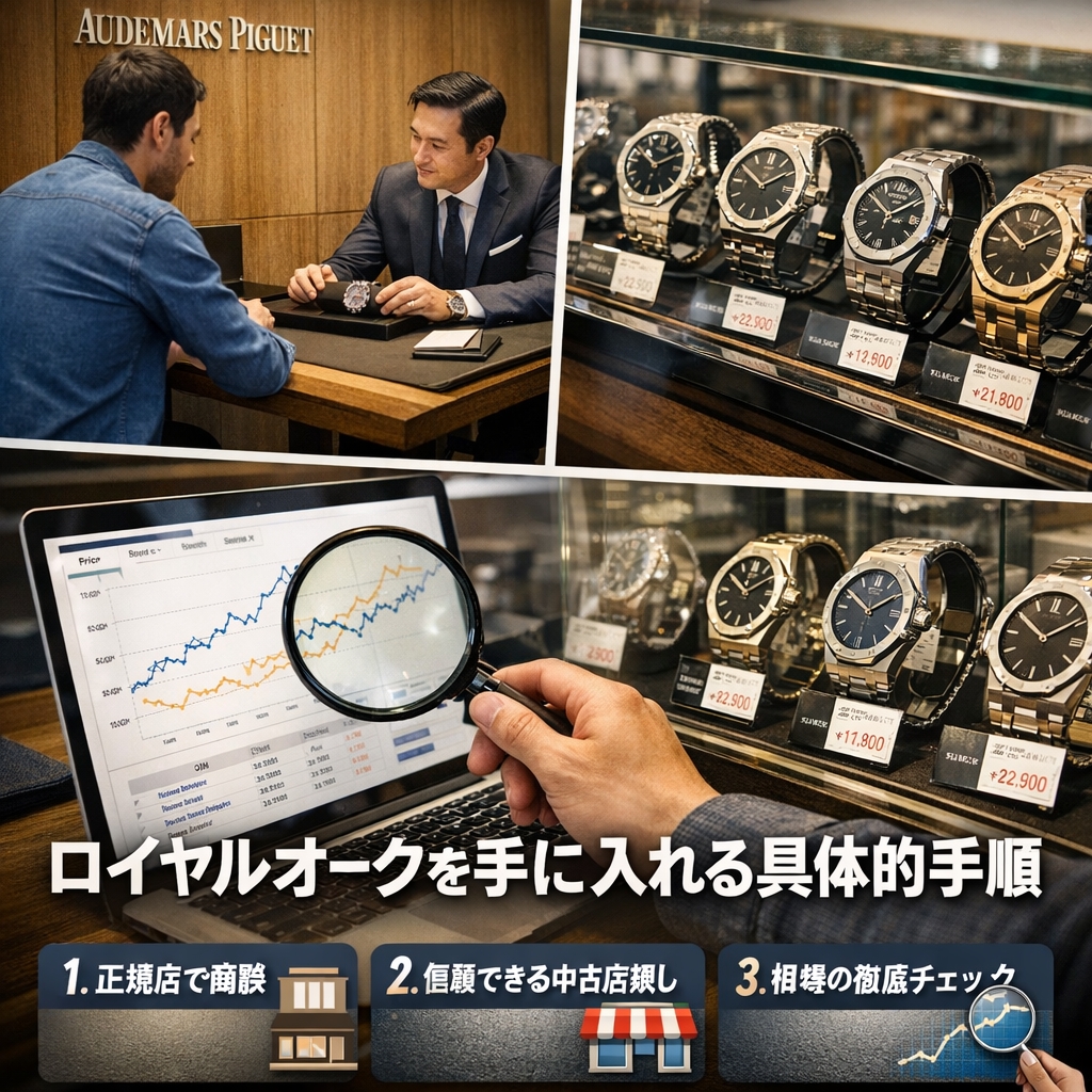 ロイヤルオークは「憧れ」だけでなく、20年という時間で価値を証明してきた数少ない高級時計です。選び方と買い方を理解すれば、一生モノとしての満足感と将来の資産性を両立できます。