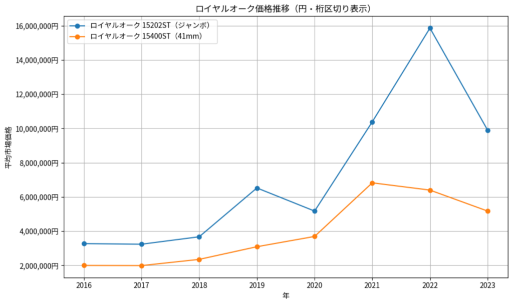 ① ロイヤルオーク20年の価格推移と上昇・下落のリアルな傾向