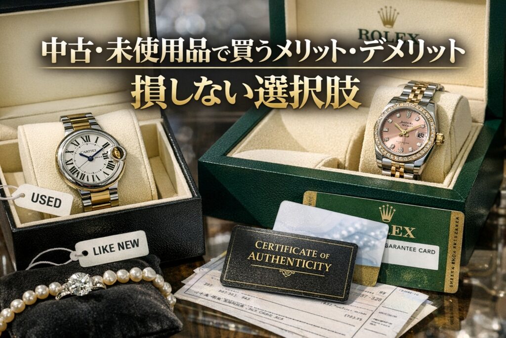 将来売ることや、購入時の価格と価値のバランスを重視する場合は、中古や未使用品が有力な選択肢になります。高級時計は新品購入直後に価格が下がることが多く、中古市場では定価より大幅に安く購入できるケースがあります。