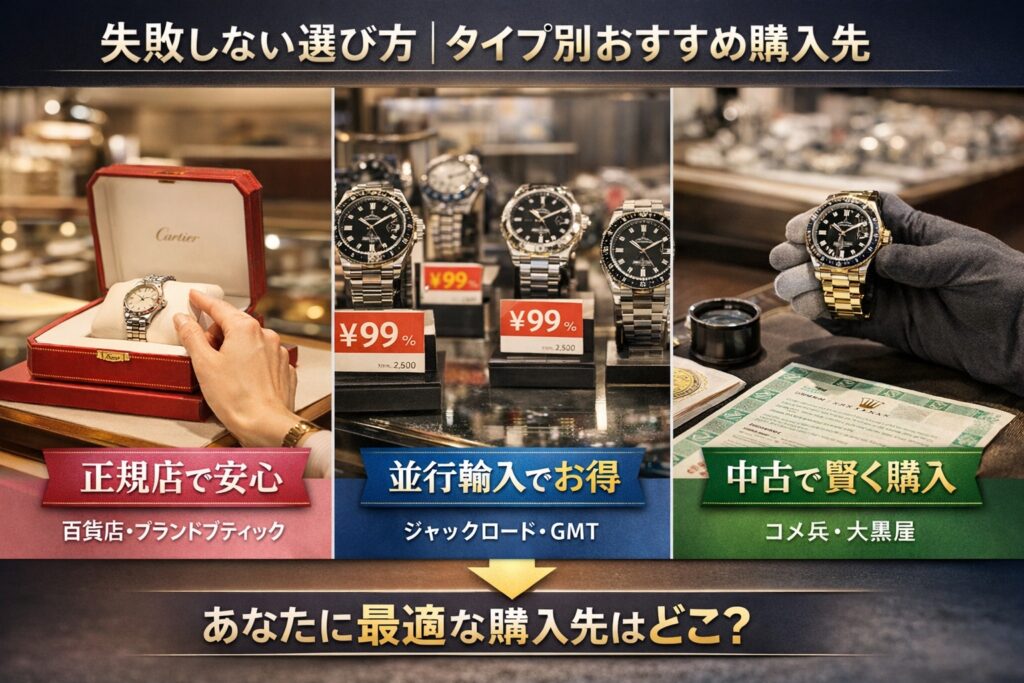 レディース高級時計の購入で最も重要なのは、「どこで買うか」ではなく「なぜその場所で買うか」を明確にすることです。
