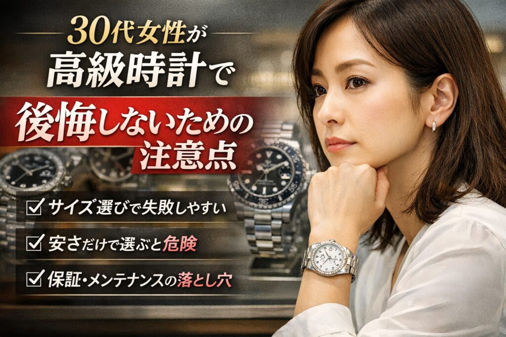 高級時計は、選び方を間違えると「思っていたのと違った」「数年で使わなくなった」と後悔につながりやすい買い物です。特に30代女性の場合、今の好みだけで決めてしまうと、年齢や生活環境の変化に合わなくなるケースが少なくありません。ここでは、多くの人がつまずきやすい注意点を整理し、後悔を避けるための考え方を解説します。